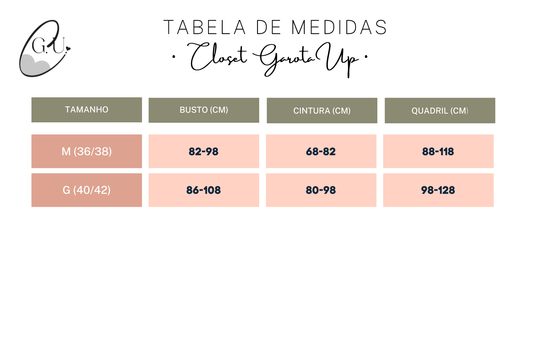 • Ajuste: modelagem justa ao corpo com bom “abraço” de tecido.