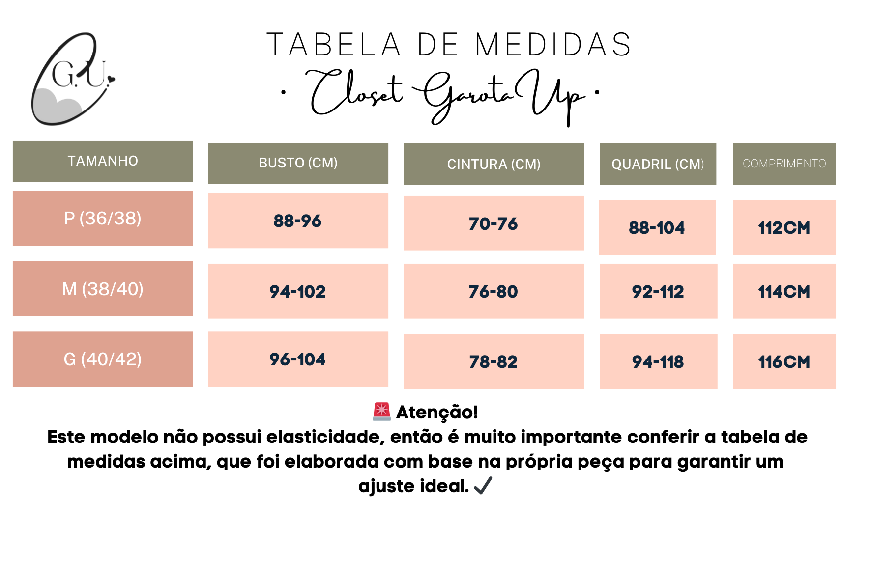 ⚠️ Atenção: por ser em tecido sem elasticidade, confira a tabela de medidas antes da compra.