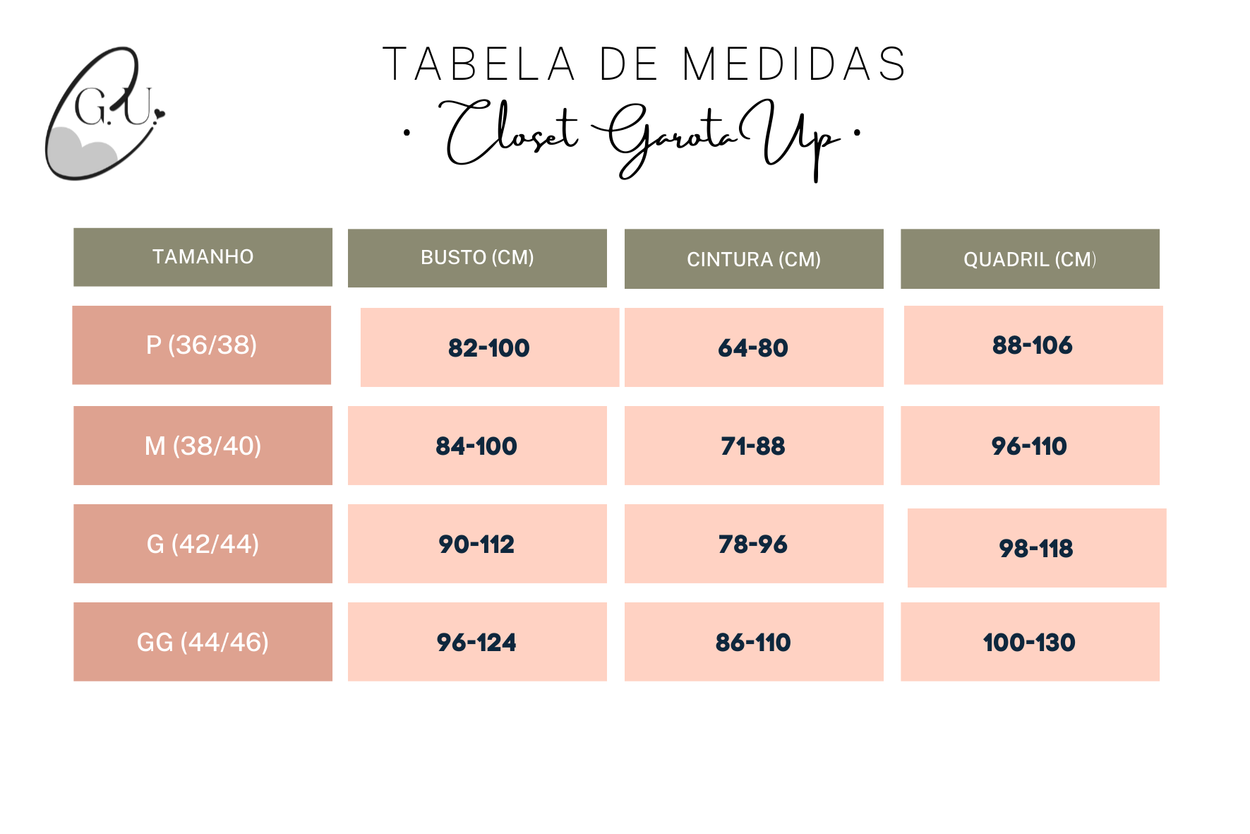 COMPRIMENTO: Quanto ao comprimento, este modelo tem aproximadamente 113cm entre o ombro e barra. Você pode medir em seu próprio corpo ou em uma peça que tenha em casa para ter uma idéia.