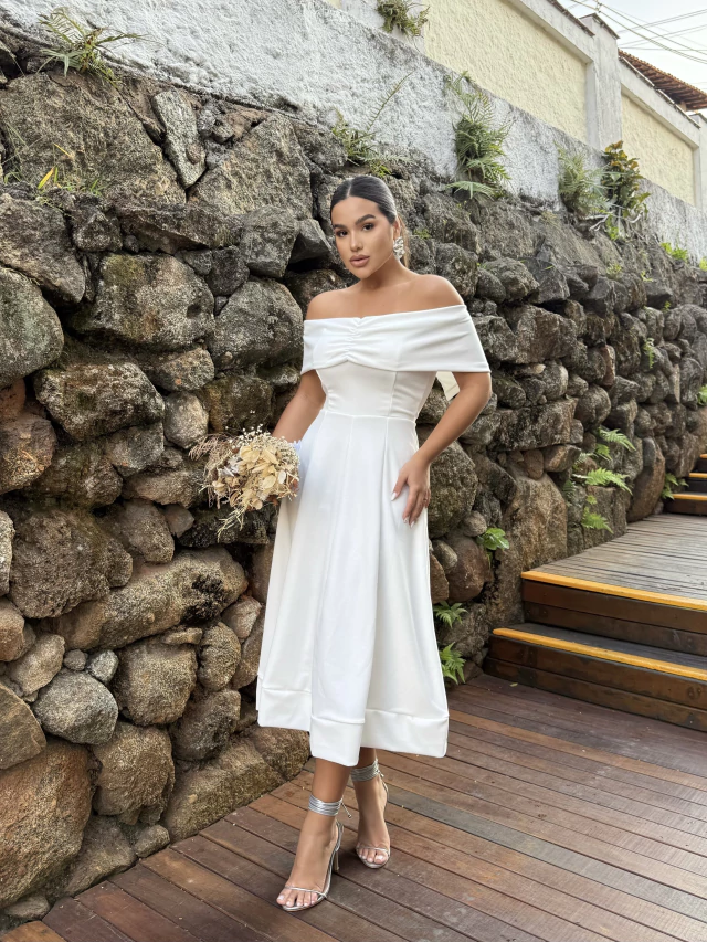 Off-the-Shoulder Midi Dress – Charm and Elegance for Modern Brides
